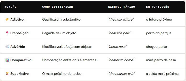 Tudo o que você precisa saber sobre a palavra "near" resumindo no quadro abaixo: