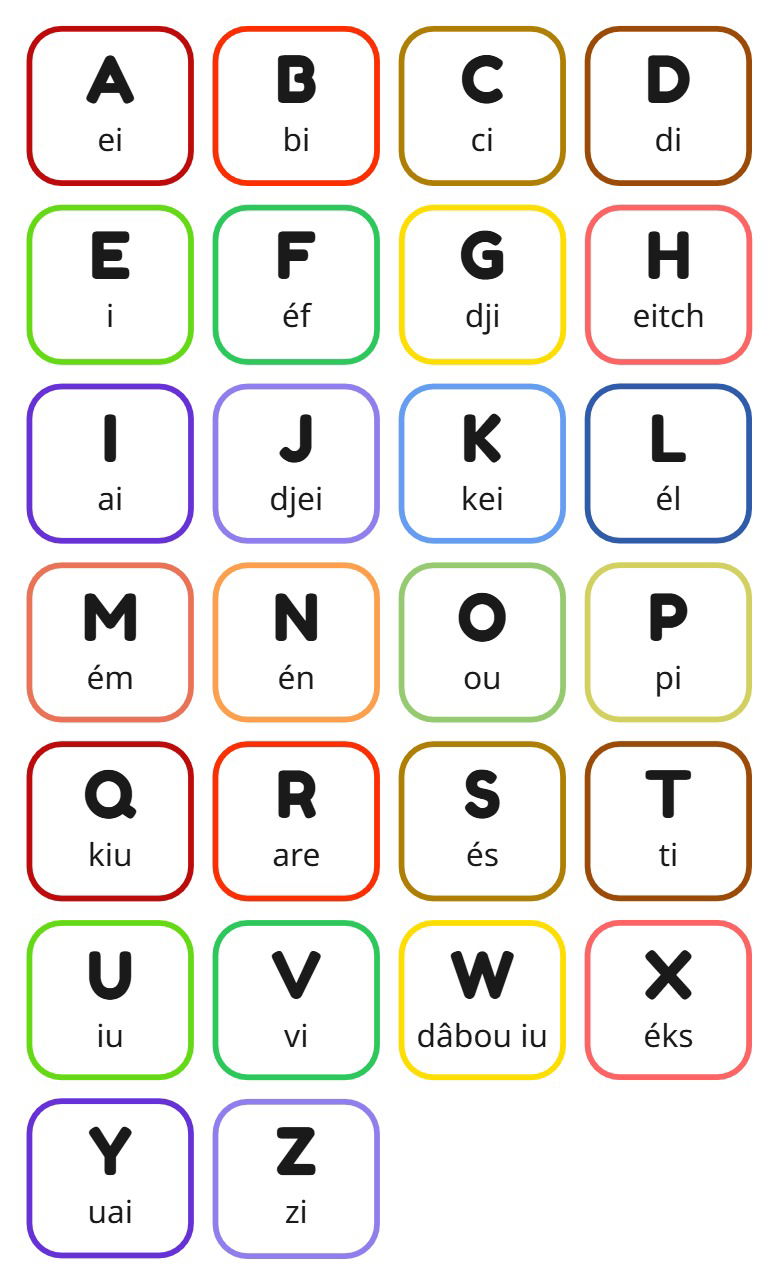 Vamos começar, sem enrolação. Colocarei aqui cada letra do alfabeto e entre parênteses teremos o som correspondente no português.
